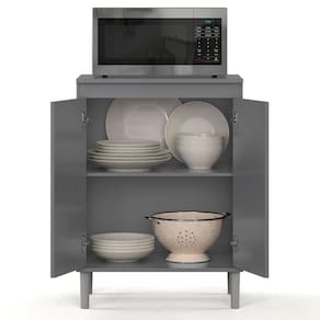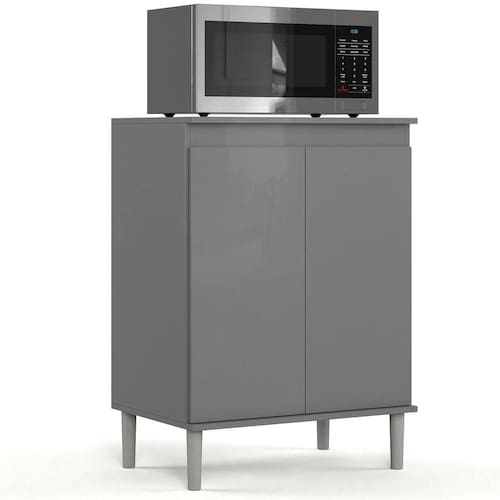 Balcão Para Micro Ondas Cinza O Balcão Micro-ondas alia funcionalidade e estilo para complementar sua cozinha com mais praticidade no dia a tampo resistente é ideal para acomodar micro-ondas ou pequenos eletrodomésticos com , oferecendo uma solução compacta e eficiente para o design clean, sem puxadores externos, o móvel traz um toque moderno e prateleira interna e o amplo espaço de armazenamento permitem organizar utensílios e mantimentos de forma prá pés plásticos elevados, resistentes à umidade, completam a estrutura com durabilidade e facilitam a limpeza do ões:Altura: 86,4 cmLargura: 61 cmProfundidade: 45 cmObservações:- Tampo ideal para micro-ondas ou pequenos eletrodomésticos- Sem puxadores externos, com visual moderno- Prateleira interna e amplo espaço de organização- Pés plásticos elevados, resistentes à umidade