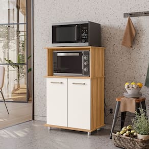 Características: Estrutura em MDP Pintura UV 02 Portas articuladas com dobradiças metálicas Puxadores em ABS Espaço para forno elétrico ou micro-ondas Amplo espaço interno Pés em Polietileno.