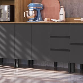 As novas cozinhas Quiditá possuem design contemporâneo. São elaboradas a partir dos projetos da nossa marca de cozinhas planejadas, Almadra. Neste formato oferecemos os módulos permitindo composições variadas para as suas necessidades. Armários com muitas facilidades, que podem ser montados do lado direito ou lado esquerdo. Proporcionando praticidade e funcionalidade, feita com materiais de alto nível, ferragens e acessórios de última geração. Projeto pensado para lhe oferecer praticidade e bem estar no seu dia a dia. Suporta Granito: Não Acabamento da Prateleira: Finish Foil Escala de Brilho da Prateleira: Semi-Brilho Acabamento da Gaveta: Finish Foil Escala de Brilho da Gaveta: Semi-Brilho Acabamento da Porta: Finish Foil Escala de Brilho da Porta: Semi-Brilho Acabamento: Finish Foil Acabamento dos Pés: Plástico Acompanha Tampo: Não Altura dos Pés: 17.5 Ambiente Principal: Cozinha Balcão Acompanha Pia: Não Complexidade da Montagem: Baixa: pode ser montado por uma pessoa sozinha Cor: Montana/Grafite Cor do Pés: Preto Cor do Produto: Montana/Grafite Cor Flex: Não Cor Interna: Montana Escala de Brilho: Semi-Brilho Gaveta com Chave: Não Itens Inclusos: 1 Balcão, Kit Ferragens e Manual de Montagem Linha ou Coleção: Cozinha Manual de Montagem e Instalação: https://cdn2.madeiramadeira.com.br/atributo/quidita-moveis/1331022-7899788082246-4.pdf Material da Dobradiça/Corrediça da Porta: Metálica Material da Gaveta: MDP Material da Porta: MDP Material da Prateleira: MDP Material dos Pés: ABS Montagem Flex: Não Necessita Montagem: Sim Origem do Produto: Nacional Pés Reguláveis: Sim Peso: 48 Peso Máximo por Gaveta: 4 Peso Máximo por Prateleira: 8 Possui Pés: 05 Possui Portas: 02 Possui recorte para Cooktop: Não Recomendações de Uso, Manutenção e Limpeza: Deve ser feita com pano macio e seco ou levemente umedecido com água e sabão neutro. Não devem ser utilizados abrasivos como palha de aço e objetos cortantes. Sapatas Niveladoras: Sim Sistema de Montagem: Parafusos e Minifix Suporta Até (kg): 35 Tipo de Corrediça da Gaveta: Telescópica Tipo de Dobradiça/Corrediça da Porta: 35 mm Tipo de Porta: Bater Tipo de Puxador da Gaveta: Embutido Tipo de Puxador da Porta: Embutido undefined: 850857