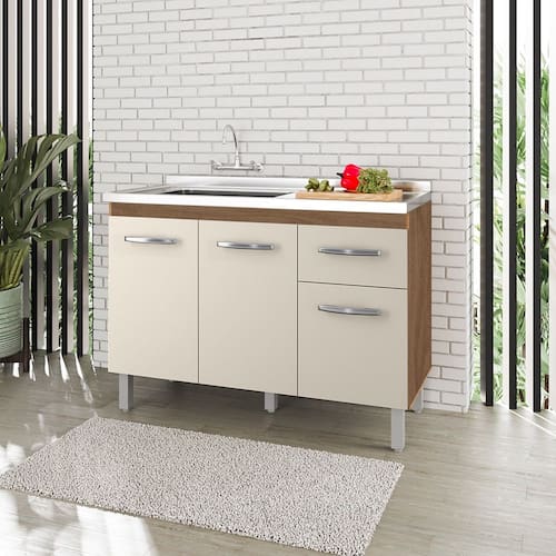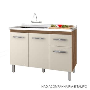 Balcão para Pia 120cm com 03 Portas e 01 Gaveta Anita Savana Off White Moblis
