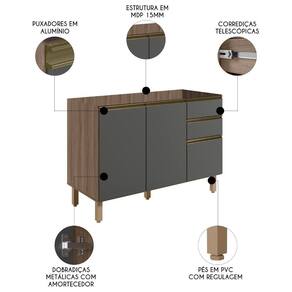 O Balcão Para Pia 120cm Sem Tampo Maly N03 Carvalho/Grafite, da Mpozenato em MDF de 15mm com acabamento em pintura UV é uma escolha elegante e funcional para uma Cozinha Moderna.