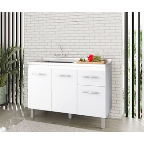 Balcão Para Pia 120m Anita Sem Tampo 3 Portas 1 Gaveta - Branco Móblis