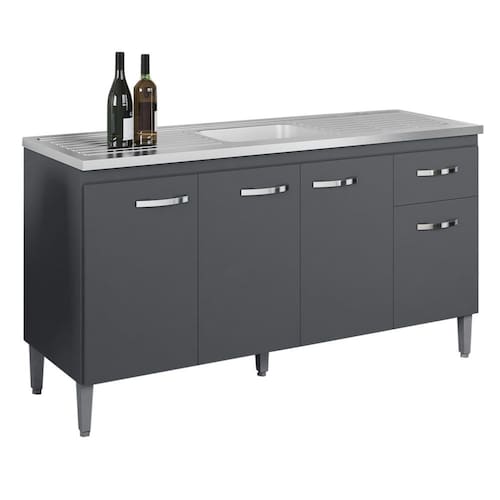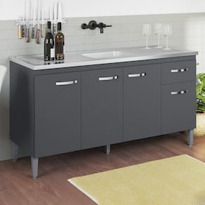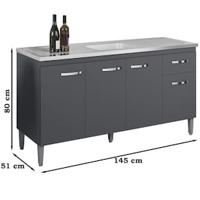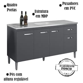 Balcão para Pia 145 cm 4 Portas Gabriela, é ideal para quem busca qualidade e sofisticação para compor sua cozinha da forma que desejar. Estrutura em MDP de 12 e 15 mm, acabamento com pintura UV. Composto por 4 portas articuladas com dobradiças metálicas, uma gaveta com corrediças metálicas e deslize suave, espaço para colocação de pia (pia não inclusa), prateleira interna, puxadores em PVC, acompanham pés em PVC com regulagem de altura. Produzido com controle de qualidade e com excelente acabamento. Este móvel chegará na sua casa separado em 1 volume.
