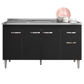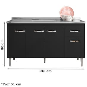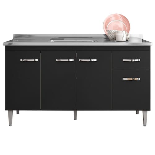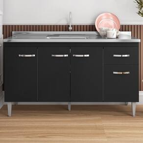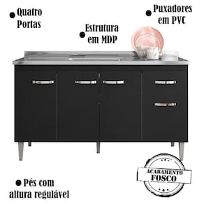 Balcão para Pia 145 cm 4 Portas Gabriela, é ideal para quem busca qualidade e sofisticação para compor sua cozinha da forma que desejar. Estrutura em MDP de 12 e 15 mm, acabamento com pintura UV. Composto por 4 portas articuladas com dobradiças metálicas, uma gaveta com corrediças metálicas e deslize suave, espaço para colocação de pia (pia não inclusa), prateleira interna, puxadores em PVC, acompanham pés em PVC com regulagem de altura. Produzido com controle de qualidade e com excelente acabamento. Este móvel chegará na sua casa separado em 1 volume.