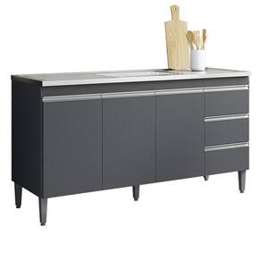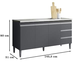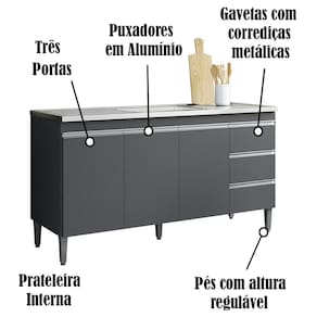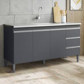 Balcao para Pia 146 cm 3 portas Andreia, é ideal para quem busca qualidade e sofisticação para compor sua cozinha da forma que desejar. Estrutura em MDP de 12 e 15 mm, acabamento com pintura UV (Fosco). Composto por 3 portas articuladas com dobradiças metálicas, 3 gavetas com corrediças metálicas com deslize suave, espaço para colocação de pia (pia não inclusa), prateleira interna, puxadores em alumínio, acompanha pés em PVC. Este é um módulo avulso dos produtos REAJL, você pode adquirir outras peças dessa composição que são vendidas separadamente. Produzido com controle de qualidade e com excelente acabamento. Este móvel chegará na sua casa separado em 1 volume.