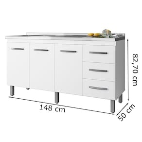 Balcão Para Pia 150 Cm 3p Diana Branco Mobbs