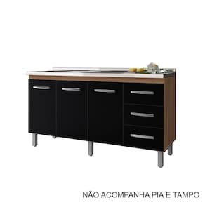 Características: Estrutura em MDP Acabamento em pintura UV 03 Portas com Dobradiças Metálicas 03 Gavetas com Corrediças Metálicas Puxadores em Plástico Cromados Altura dos Pés 16 cm Pés com Regulagem Prateleiras e Amplo Espaço Interno NÃO ACOMPANHA PIA E TAMPO