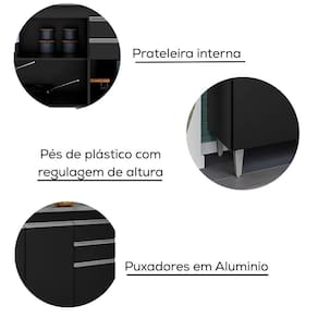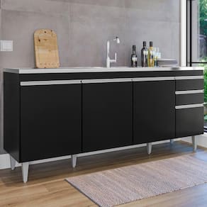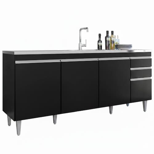Balcao Para Pia 4 Portas 2 Gavetas 180 Cm Bp Agatha Preto