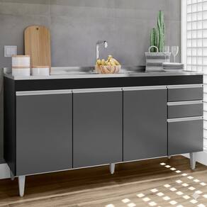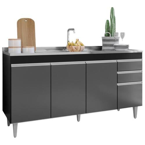 Balcao Para Pia 4 Portas 2 Gavetas Bp 160 Cm Lorena Preto Grafite Grafite