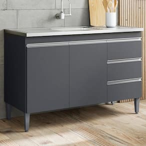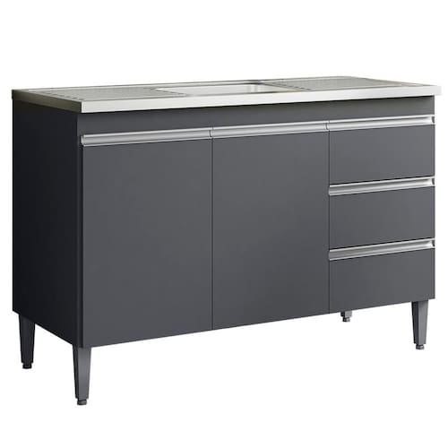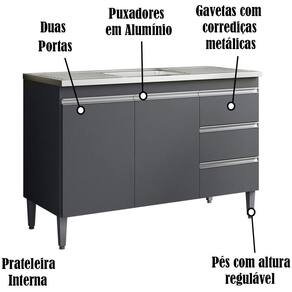 Balcao para Pia 97 cm 2 portas Andreia, é ideal para quem busca qualidade e sofisticação para compor sua cozinha da forma que desejar. Estrutura em MDP de 12 e 15 mm, acabamento com pintura UV (Brilho/Fosco). Composto por 2 portas articuladas com dobradiças metálicas, 3 gavetas com corrediças metálicas com deslize suave, espaço para colocação de pia (pia não inclusa), prateleira interna, puxadores em alumínio, acompanha pés em PVC. Este é um módulo avulso dos produtos REAJL, você pode adquirir outras peças dessa composição que são vendidas separadamente. Produzido com controle de qualidade e com excelente acabamento. Este móvel chegará na sua casa separado em 1 volume.