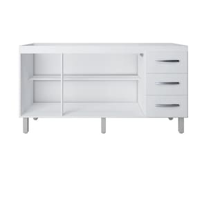 * 3 portas e 3 gavetas com corrediças metálicas * 1 prateleira interna * 6 puxadores cromados * 5 pés de plástico reguláveis (altura dos pés: 16,5 cm, ajuste até 18 cm)