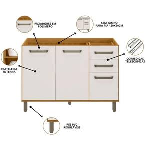 Balcão Para Pia Criare 120 cm 3 Portas Poliman