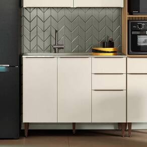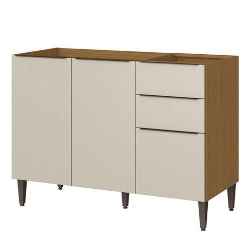 Balcão Para Pia De Cozinha 1,20 Cm 3 Portas 2 Gavetas Raiar Atacama/areia