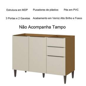 Balcão para Pia de Cozinha 1,20 cm 3 Portas 2 Gavetas Raiar