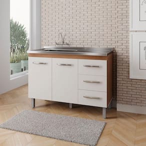Balcão para Pia de Cozinha 1,20 Bianca com 2 Portas e 3 Gavetas Savana/Off White - Moblis