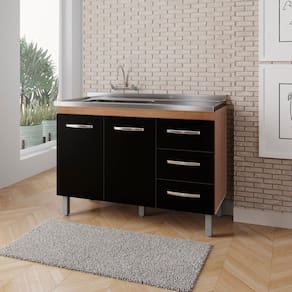 Balcão para Pia de Cozinha 1,20m Bianca com 2 Portas e 3 Gavetas Savana/Preto - Moblis