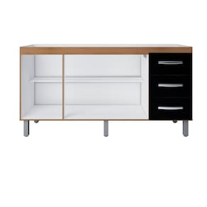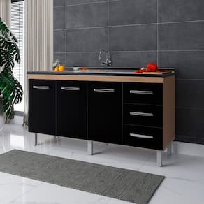Balcão para Pia de Cozinha 1,60m Emily com 3 Portas e 3 Gavetas Savana/Preto - Moblis