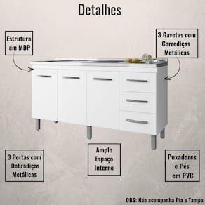 Balcão Para Pia Diana 150 cm 3 Portas Moblis