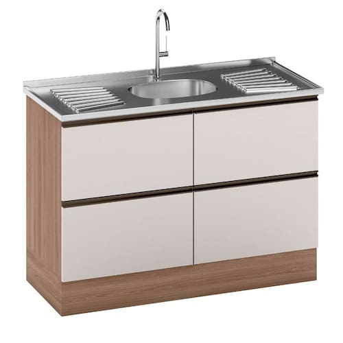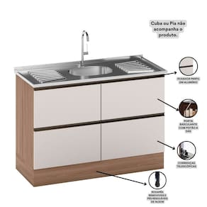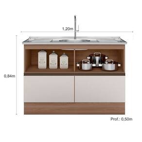 Características: Marca: Poliman Móveis Modelo: Etna 2 Portas 2 Gavetas Balcão para pia -sem tampo- Portas basculantes com pistão a gás Dobradiças resistentes de 35mm com a função slow motion Gavetas com corrediças telescópicas Pés PVC reguláveis Rodapés removíveis com presilhas modelo click
