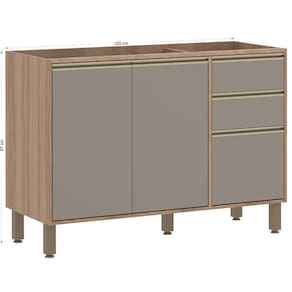 Características: Modelo: Yara Matéria-prima: MDP Revestimento: Pintura UV Acabamento: Estrutura fosca e portas e gavetas brilhantes Tampo: Não acompanha tampo ou pia Portas: 2 Dobradiças: Metálicas Gavetas: 3 Corrediças: Telescópicas Puxadores: Alumínio Pés: Plásticos