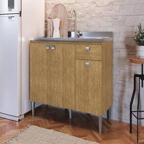 Amplo Espaço de Armazenamento: Com 3 portas e 1 gaveta, oferece espaço suficiente para organizar utensílios e mantimentos.