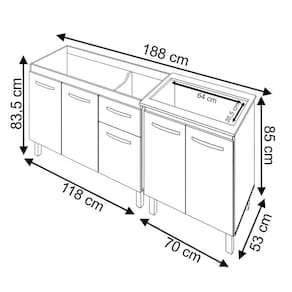 Altura 85 x Largura 188 x Profundidade 53 cm