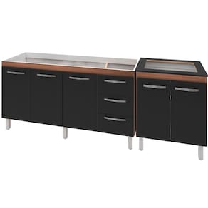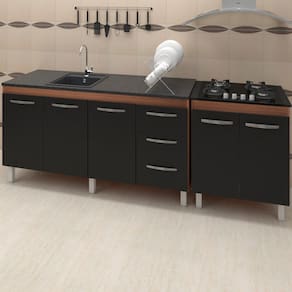 Balcão para Pia Emily e Cooktop 4 Bocas Jade, é ideal para quem busca qualidade e sofisticação para compor sua cozinha da forma que desejar. Estrutura em MDP de 12 e 15 mm, acabamento em pintura UV. Kit com 01 balcão para pia de 160cm de 3 portas e 3 gavetas e 01 balcão para Cooktop (53x36 cm tampo já recortado), com 02 portas articuladas, dobradiças metálicas, puxadores em plástico cromado, espaço para utensílios, acompanham pés fixos que garantem a firmeza que o móvel precisa. Produzido com controle de qualidade e com excelente acabamento. Este móvel chegará em sua casa separado em 02 volumes.