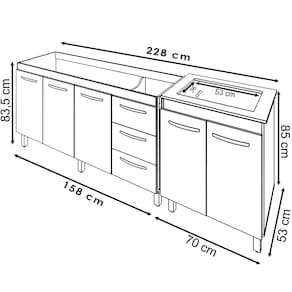 Altura 85 x Largura 228 x Profundidade 53 cm