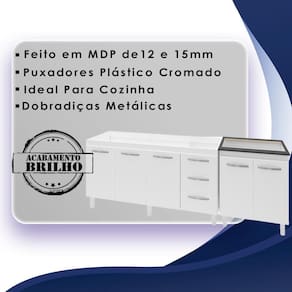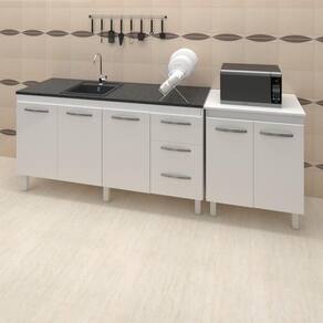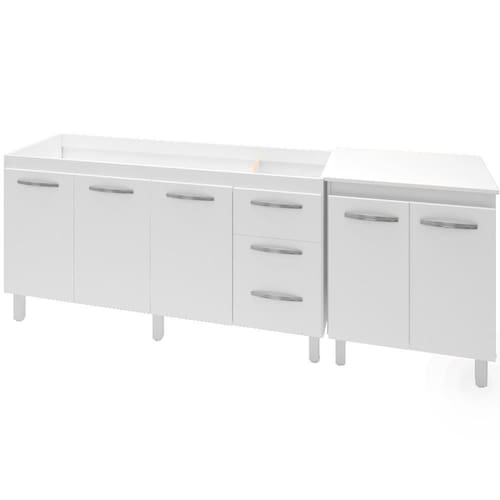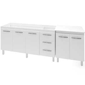 Balcão para Pia Emily e Multiuso Serena, é ideal para quem busca qualidade e sofisticação para compor sua cozinha da forma que desejar. Estrutura em MDP de 12 e 15mm, acabamento em pintura UV. Kit com 01 balcão para pia de 160cm de 3 portas e 3 gavetas e 01 balcão Multiuso, com 02 portas articuladas, dobradiças metálicas, puxadores em plástico cromado, espaço para utensílios, acompanham pés fixos que garantem a firmeza que o móvel precisa. Produzido com controle de qualidade e com excelente acabamento. Este móvel chegará em sua casa separado em 02 volumes.
