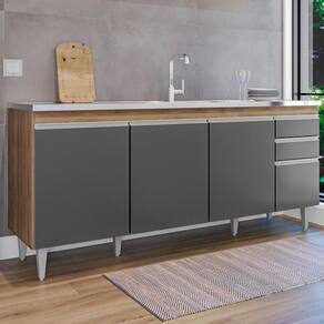 Balcão Para Pia Agatha, ideal para compor sua cozinha com funcionalidade e eficiência! Estrutura em MDP 15 mm com acabamento BP. Composto por portas com dobradiças metálicas e gavetas com corrediças metálicas, ambas com puxadores em perfil de alumínio, além de amplo espaço interno. Acompanha também pés em plástico com regulagem de altura. TAMPO/PIA NÃO INCLUSO. Produto será entregue em 01 volume.
