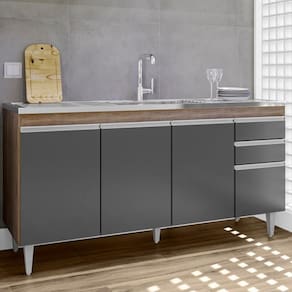 Balcão Para Pia Lorena, ideal para compor sua cozinha com funcionalidade e eficiência! Estrutura em MDP 15 mm com acabamento BP. Composto por portas com dobradiças metálicas e gavetas com corrediças metálicas, ambas com puxadores em perfil de alumínio, além de amplo espaço interno. Acompanha também pés em plástico com regulagem de altura. TAMPO/PIA NÃO INCLUSO. Produto será entregue em 01 volume.