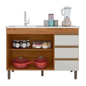 Balcão Karen Para Pia 119 cm, uma excelente opção para sua casa. Feito em estrutura de MDP 15mm bio-sustentável, o móvel conta com 02 portas e 03 gavetas, para maior aproveitamento de espaço, com dobradiças metálicas e puxadores perfil de PVC, proporcionando segurança para abertura das portas e gavetas. Não acompanha tampo. Este item possui acabamento fosco e semi brilho, em sua frente contém uma pintura texturizada, trazendo estilo e personalidade para sua cozinha, combinando com os mais diversos ambientes. Este móvel chegará na sua casa separado em 1 volume.