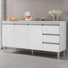 O Balcão Pia 160cm Andréia é a escolha perfeita para quem busca qualidade e sofisticação ao personalizar sua cozinha conforme desejado. Fabricado com uma estrutura em MDP, este balcão apresenta um acabamento com pintura UV. O móvel é composto por três portas equipadas com dobradiças metálicas, três gavetas com corrediças telescópicas, puxadores em PVC, possui tampo resistente em MDP, prateleira interna para organizar seus utensílios, puxadores em alumínio, acompanha pés em PVC. Todo o processo é conduzido com controle de qualidade, resultando em um excelente acabamento.