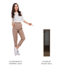 Possui dois suportes para panos com funcionamento através de corrediça telescópica. Os pés são em PVC, com regulagem de altura e rodapé removível em MDP de fácil encaixe.