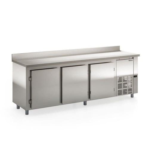 Balcão Refrigerado de Encosto, a solução ideal para estabelecimentos de gastronomia e comércio que necessitam de um suporte confiável na conservação e exposição de frios, laticínios, bebidas e alimentos diversos, sem a necessidade de congelamento. Projetado para atender às demandas das cozinhas industriais de hotéis, restaurantes, clubes, bares, lanchonetes, confeitarias, mercados, mercearias e muito mais, este balcão refrigerado oferece um amplo espaço interno com uma faixa de temperatura ajustável de 0 a +7C. A refrigeração é assegurada pelo sistema de ar forçado com evaporador aletado, proporcionando um ambiente uniformemente resfriado para seus produtos. O degelo é automático, reduzindo a necessidade de intervenção manual. Um controlador eletrônico com indicador de temperatura permite o controle preciso, garantindo que seus produtos permaneçam na temperatura ideal. O revestimento interno em aço galvanizado assegura durabilidade e higiene.