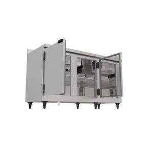 Temperatura: 0° a +°7C Isolamento térmico em poliuretano injetado Revestimento externo em Aço inoxidável AISI 430 Escovado Revestimento interno em Aço Galvanizado Sistema de refrigeração: Ar-forçado (Frost Free), ecológico e econômico. Portas com sistema anti-transpirante e puxadores Pés com regulagem de altura 1 nível de prateleiras aramadas bipartidas, reguláveis e pintadas em epóxi branco Controlador de Temperatura eletrônico digital com indicador de temperatura Degelo Automático Gás Refrigerante R134a