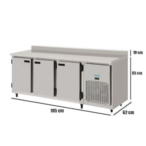 Balcão Refrigerado Encosto de Inox 3 Portas 1,85 mts com Interior Galvanizado 64KBSC185D Kofisa - 110V