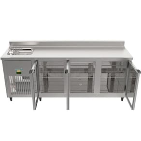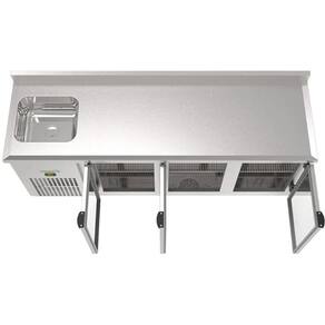 Descrição do Produto Balcão Refrigerado De Inox 2,00mts 3 Portas Com Pia Esquerdo 1350KBSP200DP Kofisa?Isolamento térmico 100% injetado em poliuretano de alta densidade Revestimento externo em Aço Inox AISI 430 Escovado Revestimento interno em Aço Galvanizado ou Aço Inox AISI 430 Brilhoso Sistema de refrigeração: Ar-forçado (Frost Free), ecológico e econômico. Pés com regulagem de altura 1 prateleira aramada por porta, regulável e pintadas em epóxi branco Controlador Eletrônico digital com indicador de temperatura Degelo Automático Gás Refrigerante R134a Dimensão da Cuba 400x340x180 mm Válvula Americana 3 ½? (Não Inclusa) Opcional: Portas de Vidro e Iluminação Interna Espelho/Frontão de 100 mm Equipamento ideal para refrigeração de alimentos e bebidas em geral, que necessitem conservação em temperatura de +1° a +°7C. Destinado a cozinhas industriais de hóteis, bares, restaurantes, lanchonetes, refeitórios, creches, mercearias, panificadoras, pizzarias e afins.adoras, pizzarias e afins.
