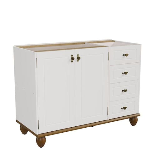 Mais uma peça chave na nossa linha de módulos que une elegância, funcionalidade e responsabilidade ambiental. Este balcão é uma adição perfeita para esta cozinha que tem um estilo provençal autêntico, complementando os outros móveis da linha. Fabricado com tampo e base em madeira maciça de 25mm, provenientes de matas reflorestadas, reafirmando o compromisso com a sustentabilidade sem comprometer a qualidade e a resistência. Destaque para os pés torneados em madeira maciça, que não só proporcionam estabilidade e durabilidade, mas também são composto com regulagens de altura para melhor se adaptar ao chão. Os puxadores com textura de ouro velho ressaltam a beleza clássica do balcão, harmonizando perfeitamente com o estilo provençal. A pintura atóxica e o acabamento em laca garantem não apenas um visual deslumbrante, mas também a segurança e longevidade do móvel. As portas e gavetas com detalhes em baixo relevo proporcionam um charme adicional, enriquecendo o design com uma textura sutil e elegante. Oferece amplo espaço interno, ideal para armazenar utensílios de cozinha, louças e outros itens essenciais, mantendo tudo organizado e acessível.