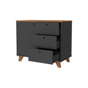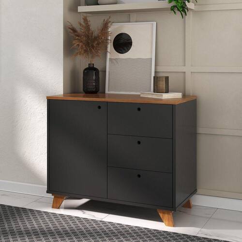 Balcão Retrô para Escritório1 Porta 3 Gavetas Lugano Freijó com preto