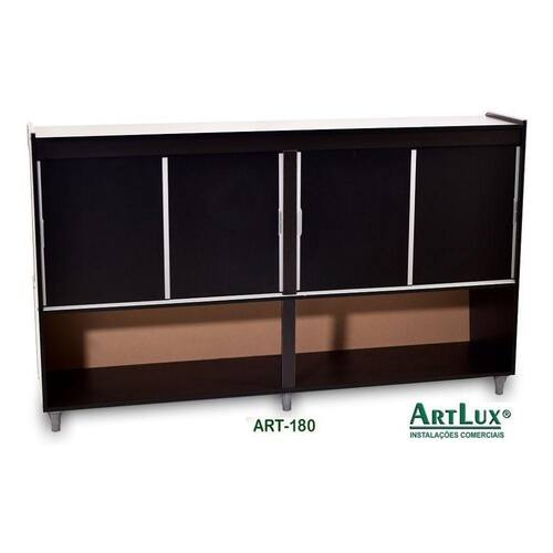 Características Balcão Seco Expositor De Produtos Preto Black faixa amarela Vidro Frontal: