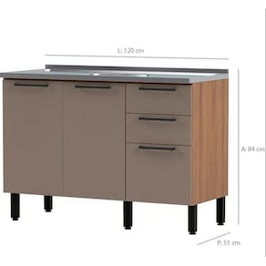 Caracteristicas: Marca: Telasul Modelo: Caiena Tipo: Balcao Quantidade de portas: 2 portas Quantidade de gavetas: 3 gavetas Quantidade de prateleiras: 1 prateleira Tipo de dobradicas: Metalicas com amortecedor slow motion Tipo de corredicas: Telescopicas Material da estrutura: MDP Material das portas: MDP Material das gavetas: MDP Material dos puxadores: Aluminio com ponteiras em ABS Tampo: Nao Nichos: Nao Pes regulaveis: Sim Escala de brilho: Fume Sistema de montagem: Parafusos, buchas e porcas