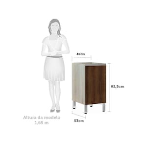Balcão De Cozinha Sem Tampo 40cm 1 Porta Lis Luciane Móveis Legno Crema Com Nogueira Dourado