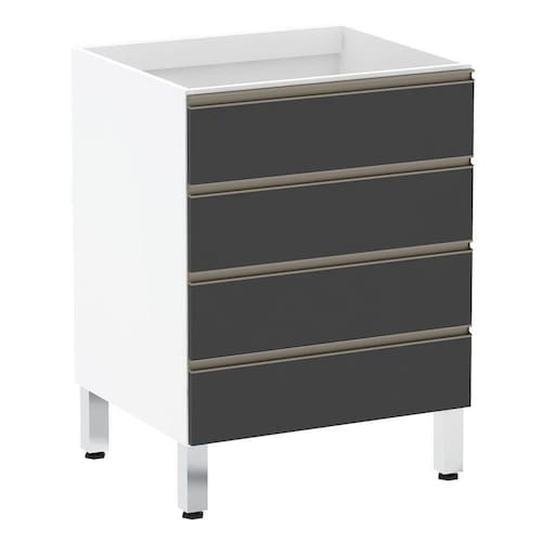 Balcão De Cozinha Sem Tampo 60cm 4 Gavetas Pérola Luciane Móveis Branco Polar Com Preto Txt