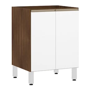 Balcão De Cozinha Sem Tampo 60cm 2 Portas Jade Luciane Móveis Nogueira Dourado Com Branco Polar Balcão Luciane Jade tudo que sua cozinha precisa. Amplo espaço para organização de seus utensílios, além de um designer inovador.