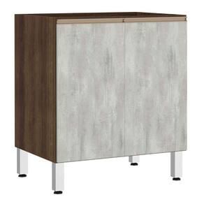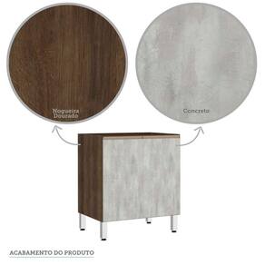 Balcão De Cozinha Sem Tampo 70cm 2 Portas Jade Luciane Móveis Nogueira Dourado Com Concreto