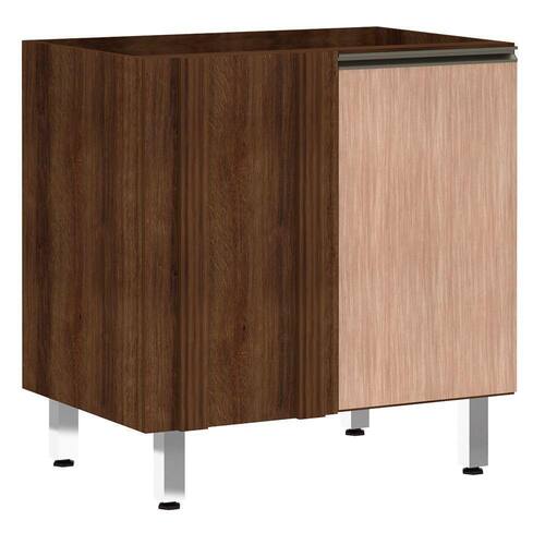 Balcão De Cozinha Sem Tampo Canto Reto 80cm 1 Porta Jade Luciane Móveis Nogueira Dourado Com Cumaru