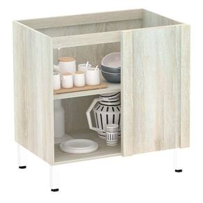 Balcão De Cozinha Sem Tampo Canto Reto Luciane 80cm 1 Porta Luci Luciane Móveis Legno Crema Com Nogueira Dourado