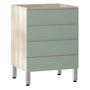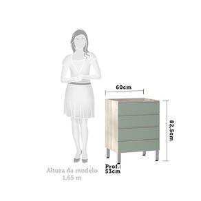 Balcão De Cozinha Sem Tampo Gaveteiro 60cm 4 Gavetas Lis Luciane Móveis Legno Crema Com Verde Jade