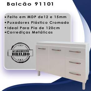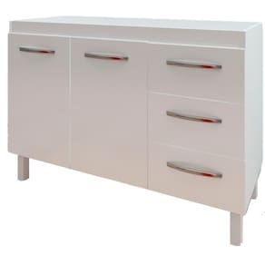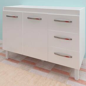 Balcão Sem Tampo Para Pia Bianca, uma excelente opção para sua casa. Estrutura em MDP de 12/15mm, com acabamento em pintura UV. Composto por 02 portas com dobradiças metálicas, uma prateleira interna para maior aproveitamento do espaço, 03 gavetas com corrediças metálicas, ideal para usar com pia de 120cm (pia não inclusa), puxadores em plástico cromado, pés fixos de 16,5cm que garantem a firmeza que o móvel precisa, possui perfeita combinação com os mais variados ambientes. Você pode compor sua cozinha da forma que desejar. Este móvel chegará em sua casa separado em 01 volume.